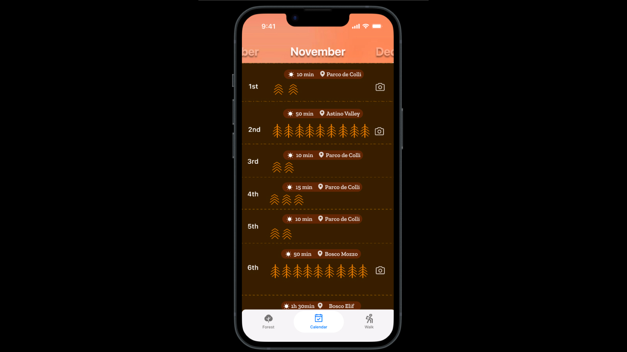 Your forest is not just a reward, it is a record. A visual, living map of every step you have taken toward a healthier, more grounded life. One you can share with friends and family, including pictures of the places you have been, opening conversations about how you are feeling and giving the people around you a real way to support you on the journey.