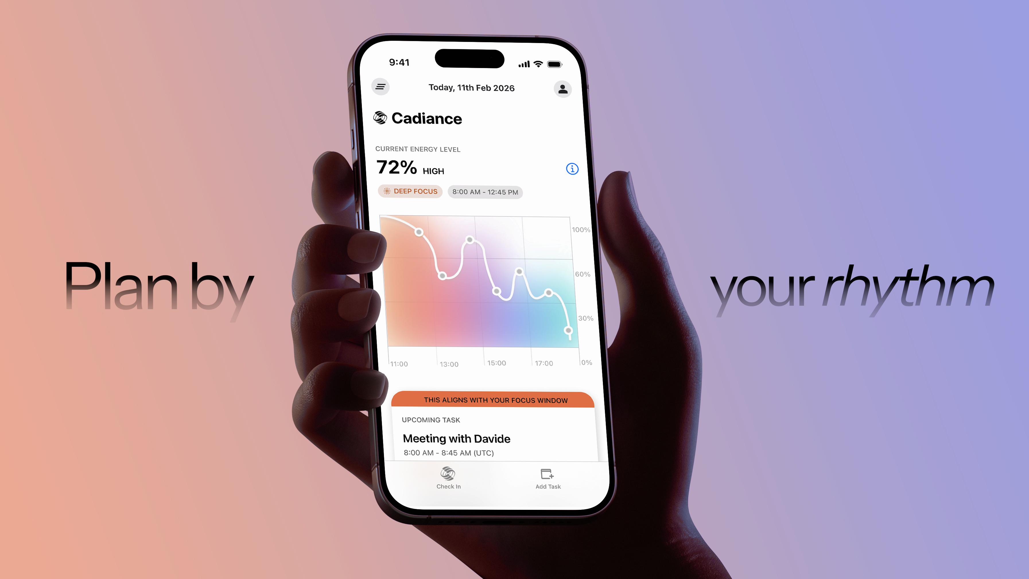 Most calendars are built on a simple but flawed assumption: that every hour of the day is equally usable. Cadence begins from the opposite idea. It recognizes that people move through the day in changing states of focus, motivation, and mental energy. Some moments are naturally better for deep thinking, others for creative exploration, lighter admin, or rest. Instead of treating planning as a problem of time alone, Cadence reframes it as a problem of rhythm, asking what would happen if your calendar responded to how you actually feel.