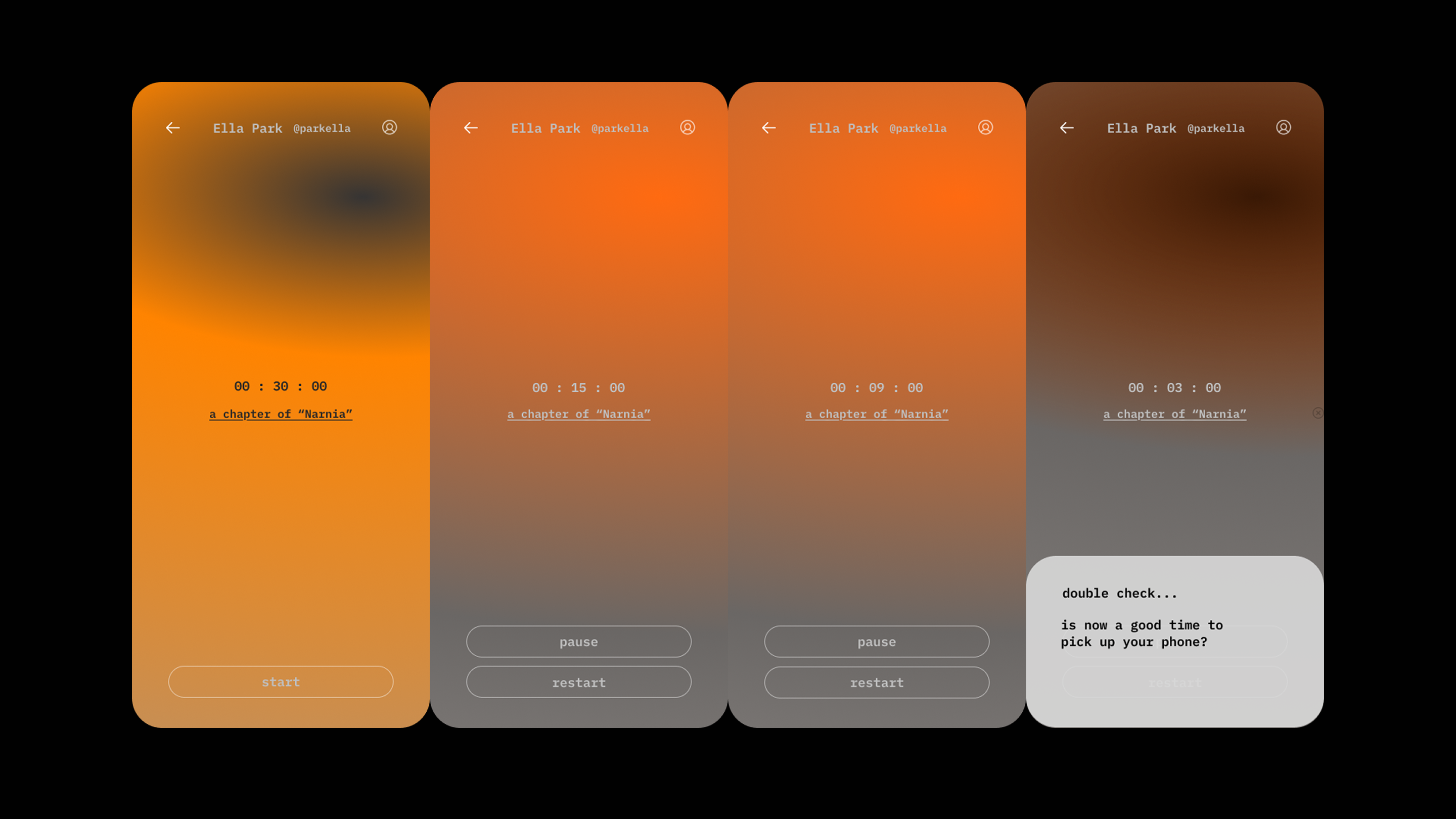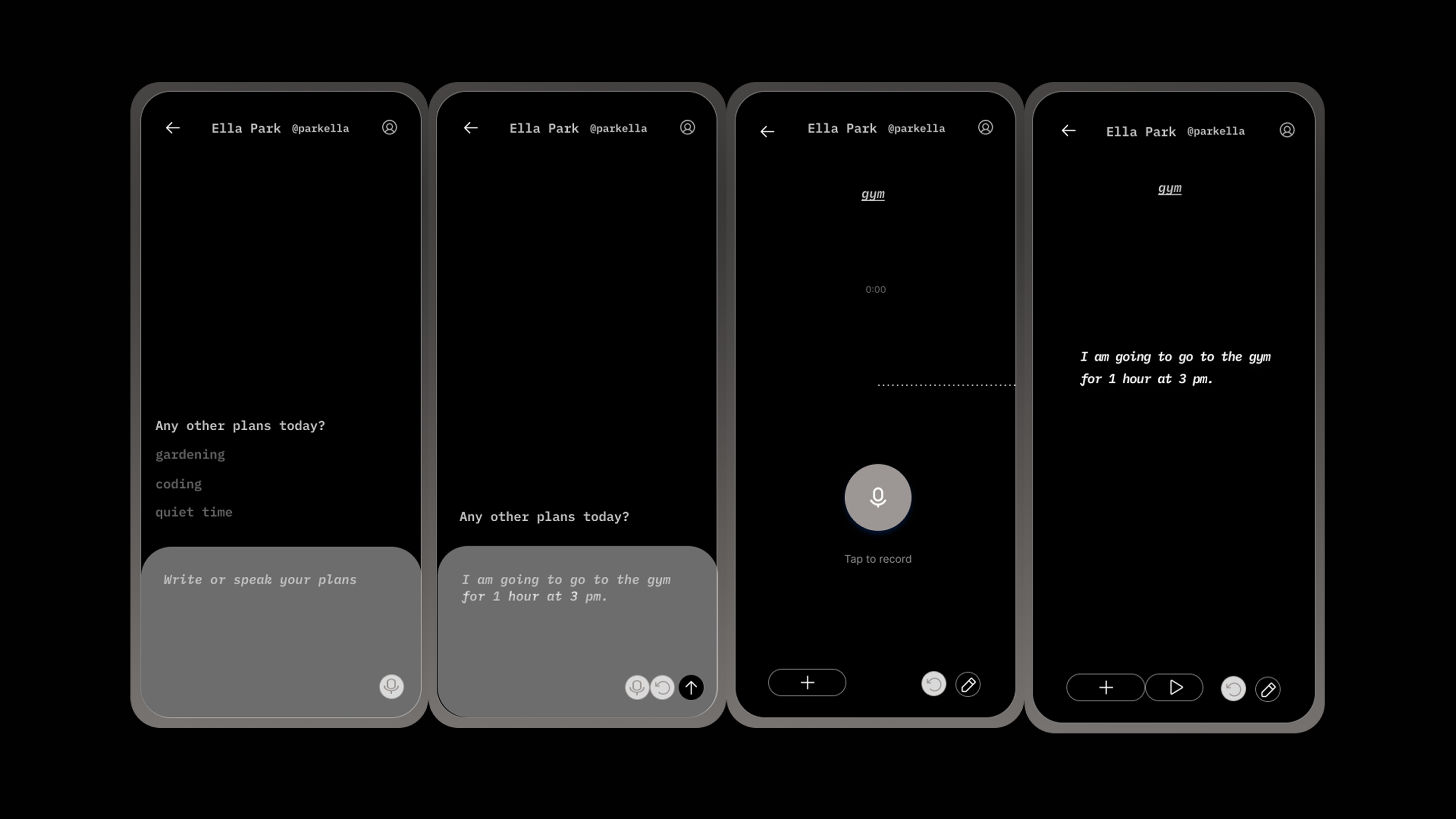 You begin by setting a custom activity and duration via text or voice. For recurring habits, saved timers are kept in a convenient list, ready to be launched at a moment’s notice. To help maintain focus, the app includes a timer that tracks screen time during active sessions.
