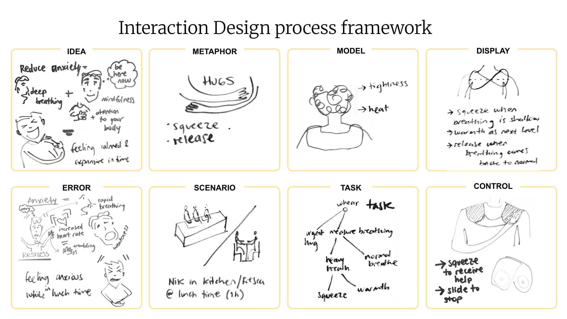 A guiding question emerged: How might we reduce the anxiety of CIID students while preparing lunch, so they enjoy lunch time? Using the metaphor of a hug as a simple yet powerful anxiety reliever, the team developed Snu-Go.